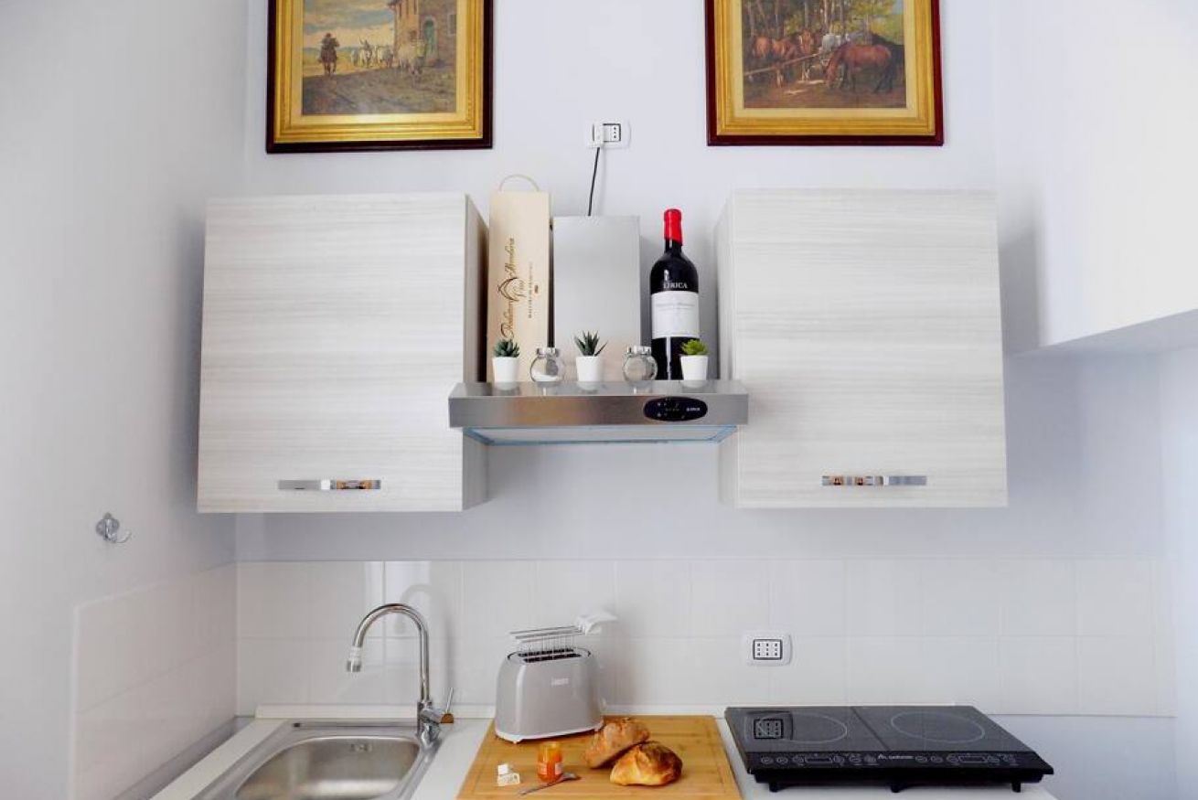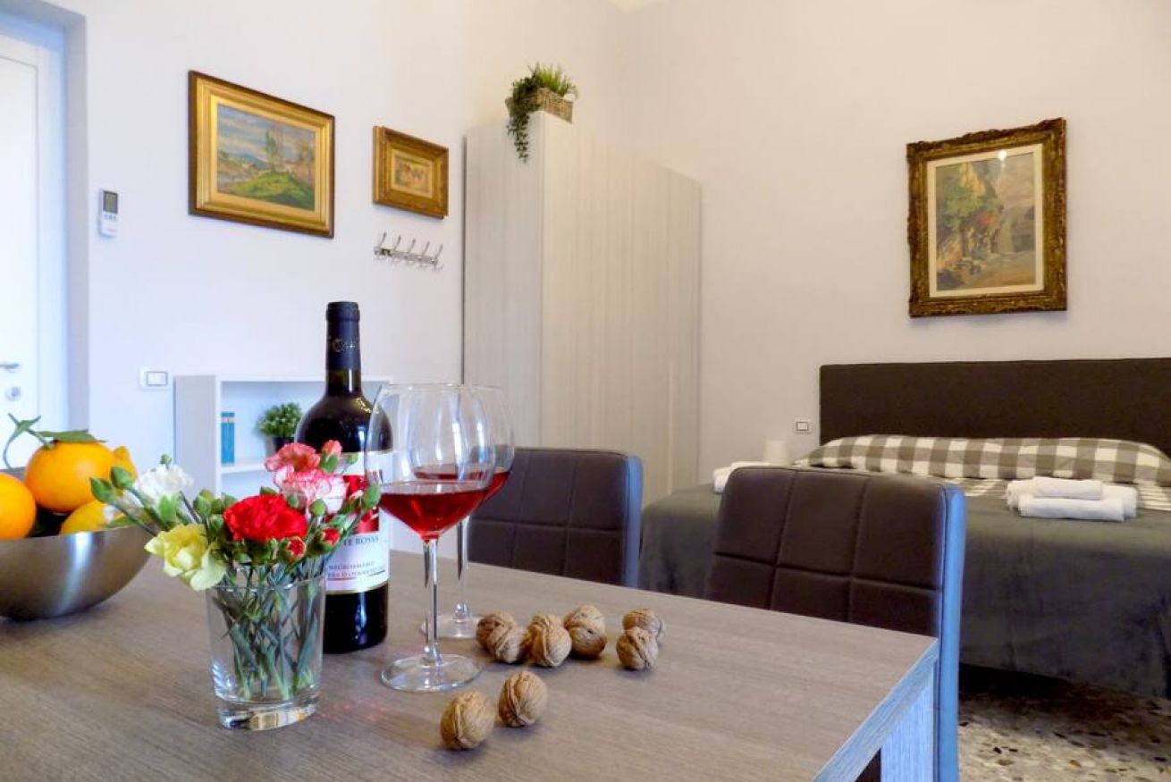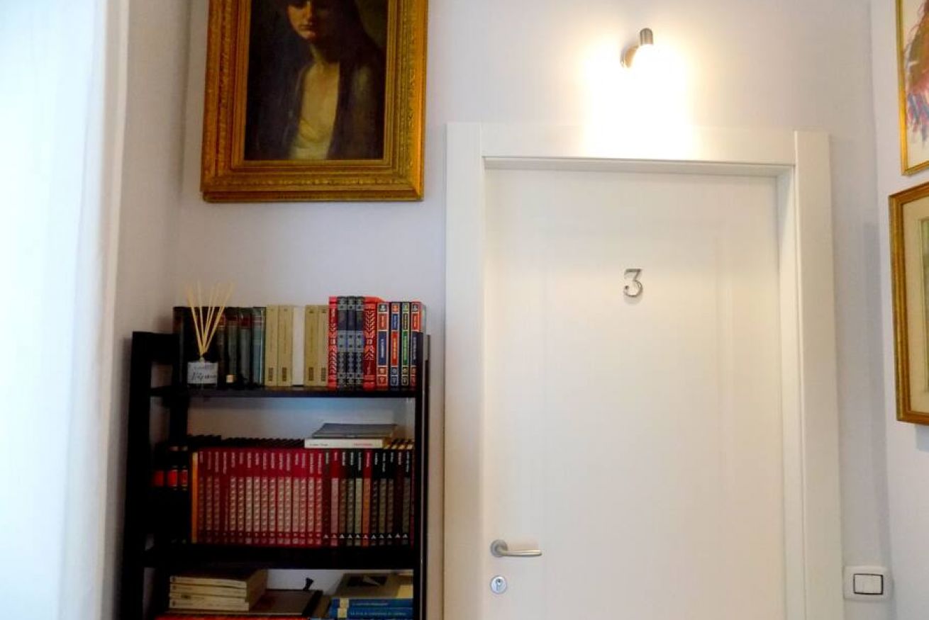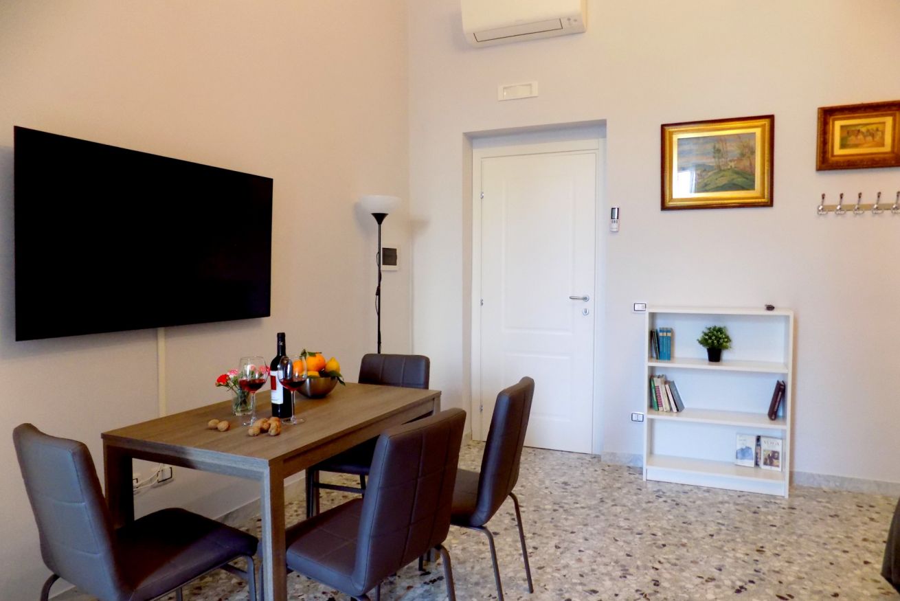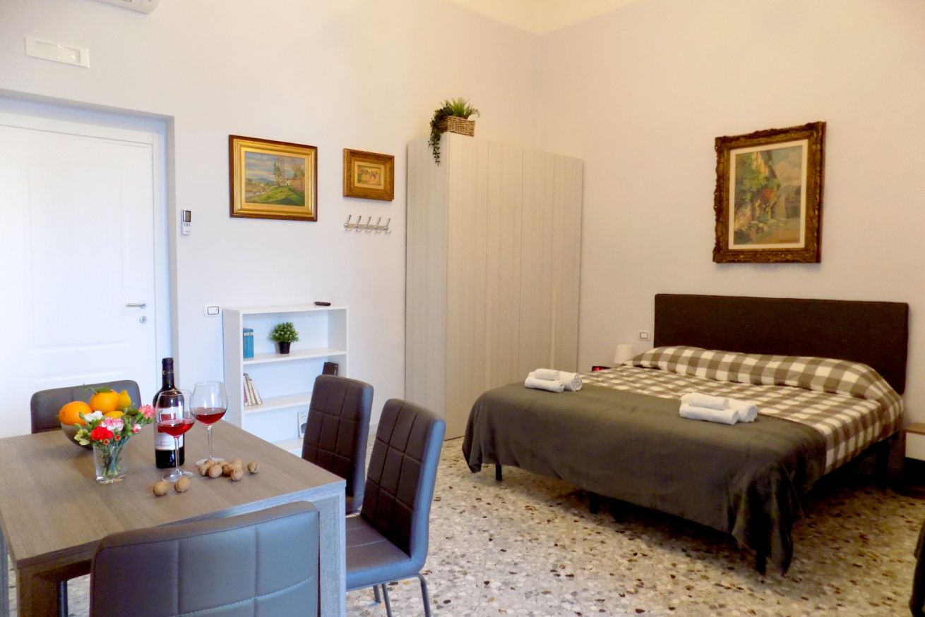 L’appartamento, di recente ristrutturazione, è al secondo piano di un antico palazzo dotato di ascensore. La porta di ingresso si apre su una stanza monitorata con telecamere a circuito chiuso da cui si accede a ciascuna unità abitativa. L’ampia metratura dell’appartamento permette di ospitare sino a 4 persone grazie alla presenza di un letto matrimoniale e all’occorrenza di altri 2 letti singoli. L'appartamento, dotato di climatizzatore caldo/freddo, Tv maxi schermo con abbonamento Netflix e si affaccia sul lato interno del condominio motivo per cui risulta molto silenzioso. La cucina è dotata fuochi elettrici, bollitore, tostapane, frigorifero e forno microonde. Il bagno è spazioso e dotato di sanitari sospesi e comodo box doccia.
